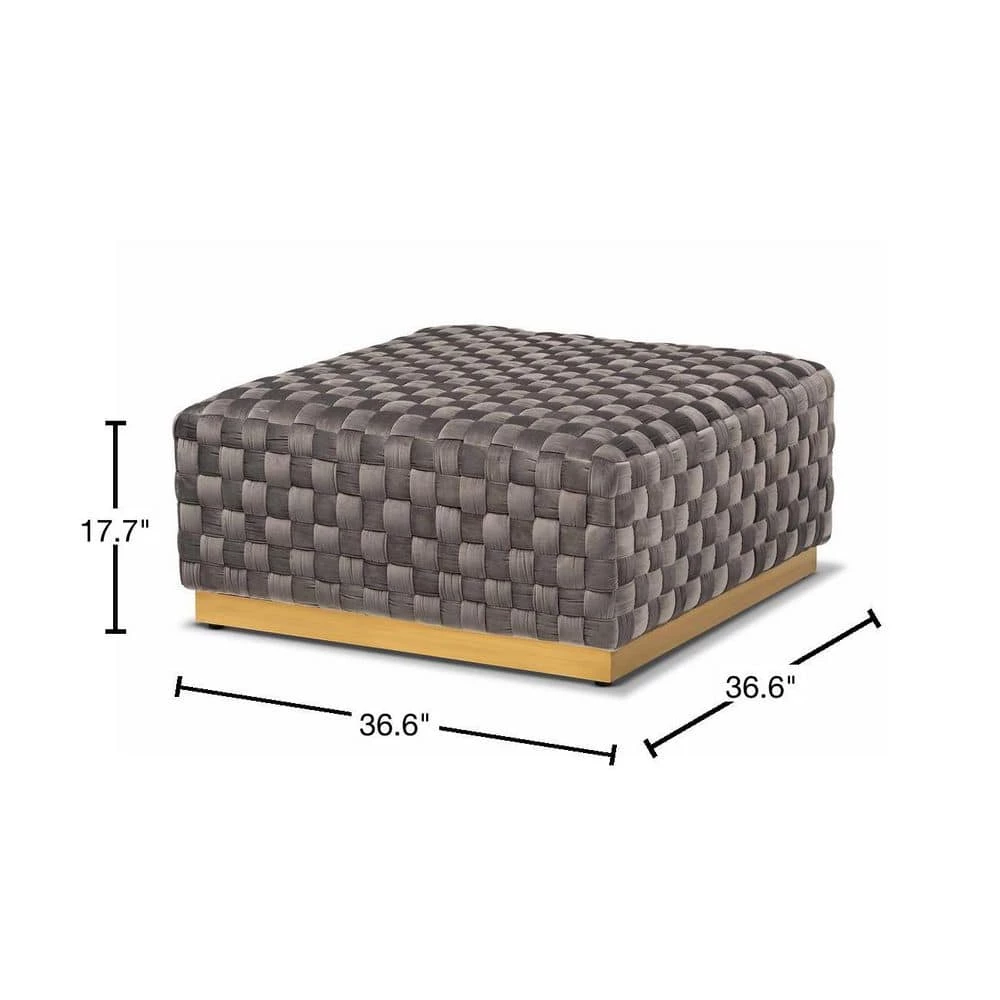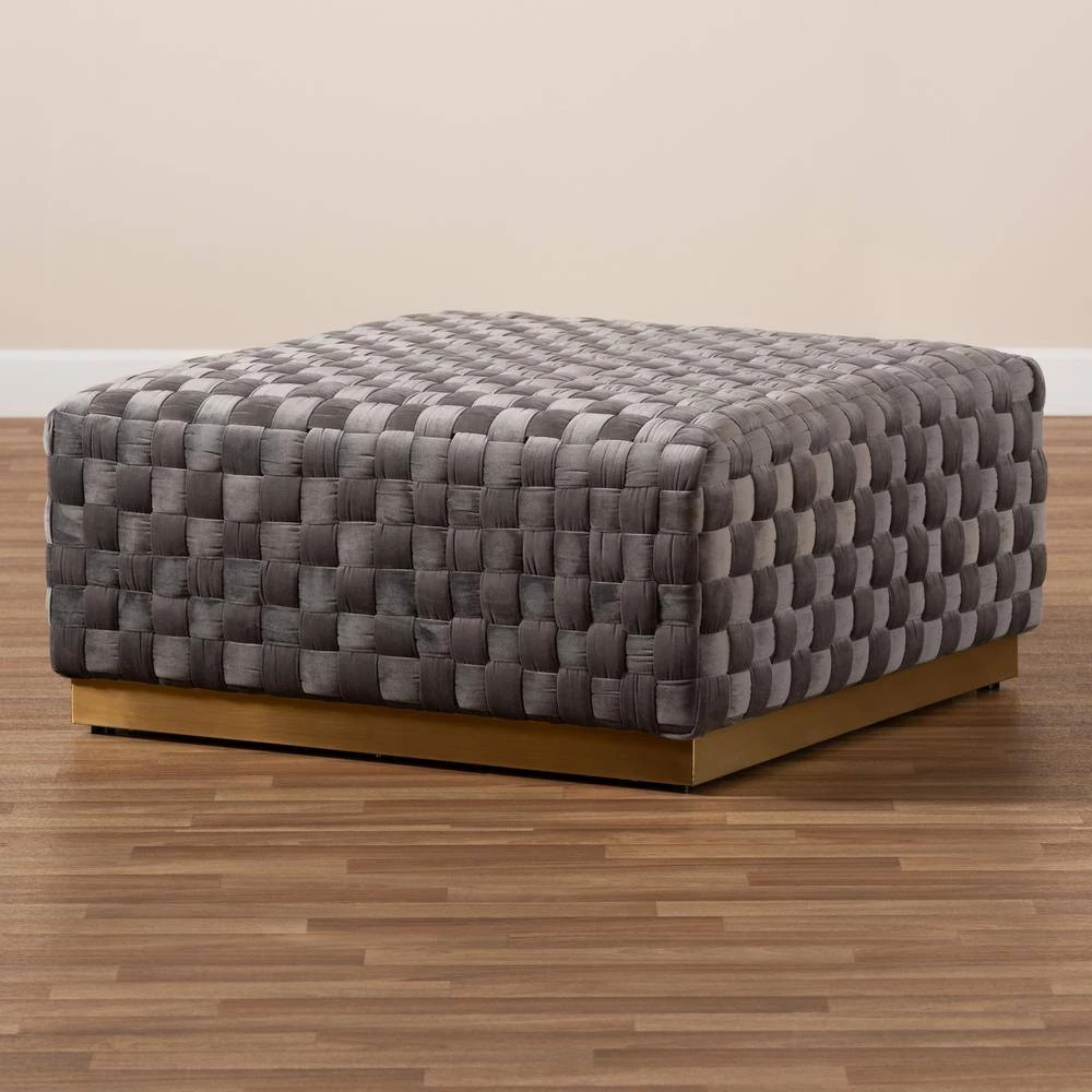 Add luxurious comfort to any space with the Noah ottoman. Made in China, the Noah is upholstered in a sleek velvet fabric that is intricately woven to add texture and accentuate the stunning grey tones. Plush foam padding provides ample comfort, while the gold-tone metal base lends a glamorous look. Fully assembled, this versatile piece can be used as a coffee table, footstool or as extra seating for guests. Spruce up any living room with lavish appeal and utility of the Noah ottoman.