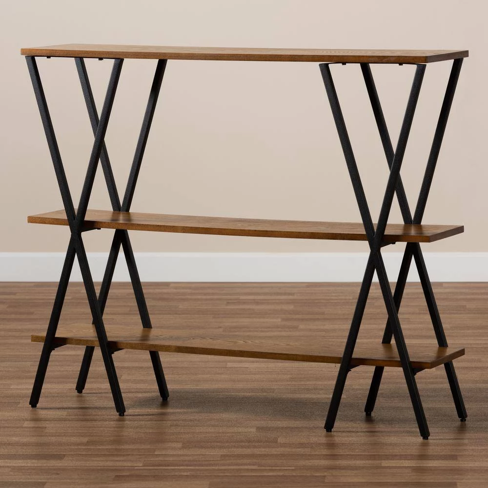 Upgrade your entryway with the stunning style of the Norton console table. Made in China, the Norton features an eye-catching contrast of walnut brown finished wood and black finished metal for a chic industrial look. A large tabletop and two spacious shelves provide ample surface area to display decorations. Requiring assembly, the piece features a bold x-cross frame that allows the piece to stand out while allowing light to flow freely throughout the room. Whether placed in the living room, hallway or entryway, the Norton is sure to be the centerpiece in any space.