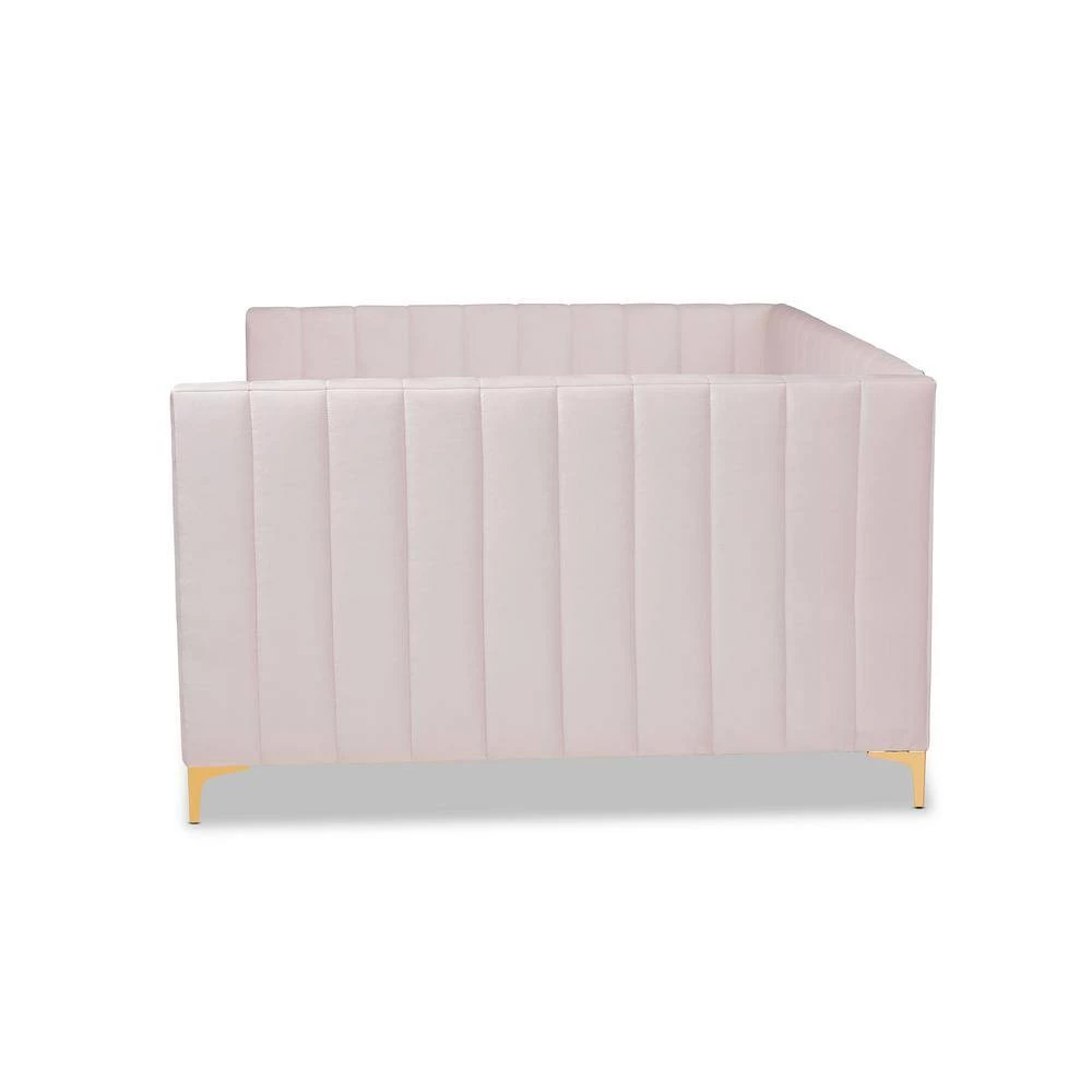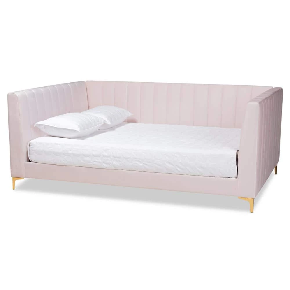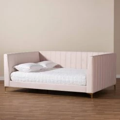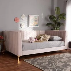 Lounge in lavish comfort with the elegant Oksana daybed. Made in Malaysia, the Oksana is comprised of a sturdy wood frame padded with foam and upholstered in a sumptuous velvet fabric. Channel tufting provides plush texture and lends an eye-catching aesthetic. Requiring assembly, the daybed is supported by glamorous gold-tone metal legs. Showcasing a luxurious design with sumptuous comfort, the Oksana daybed elevates any bedroom or guestroom.