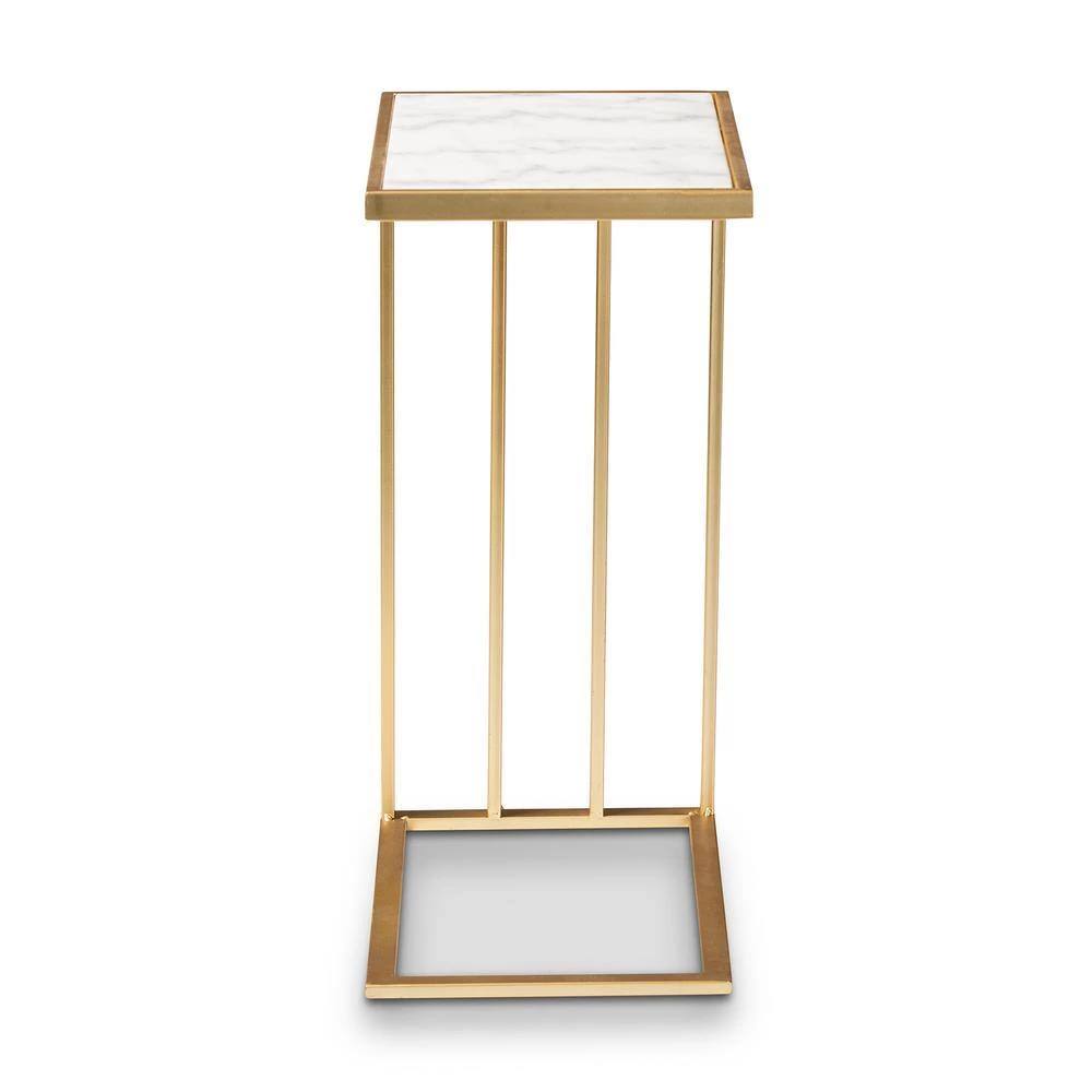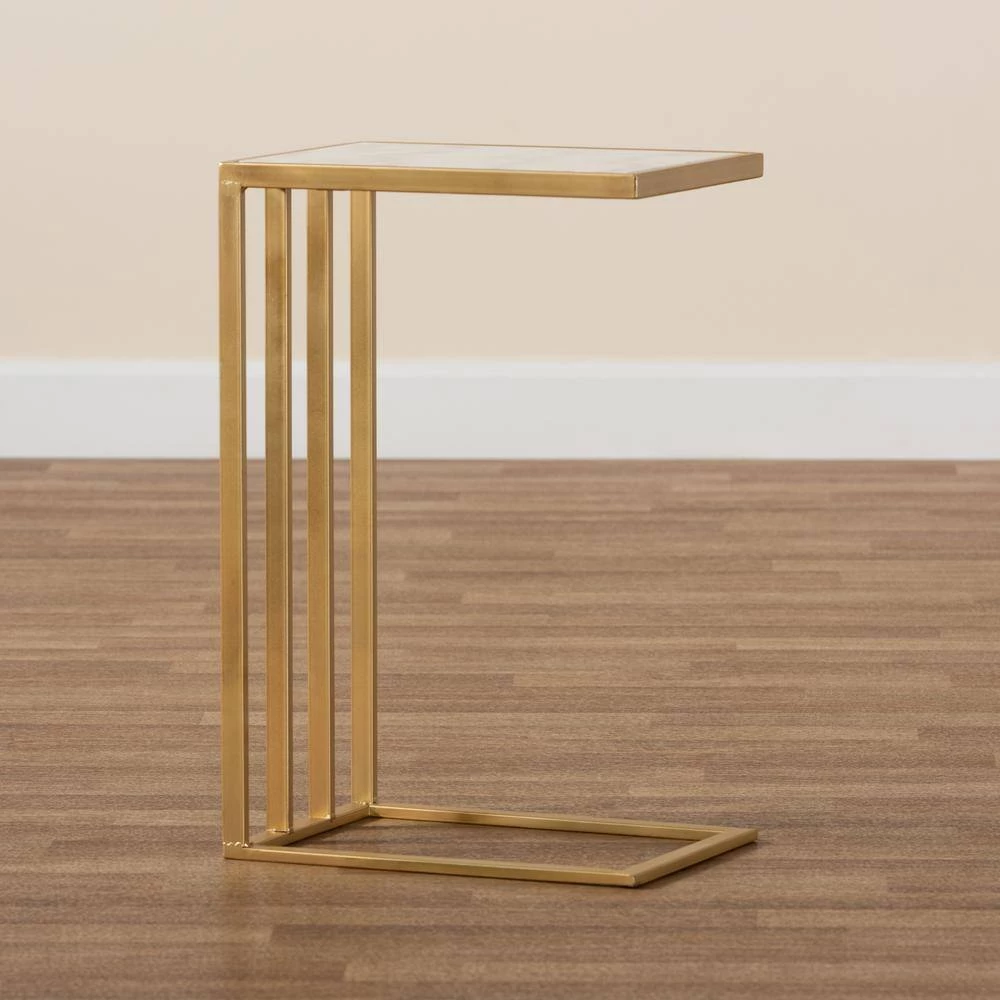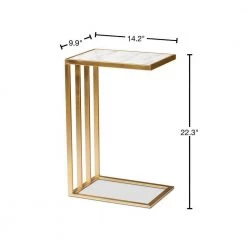 The Parkin C end table enriches any space with a luxurious update on practical design. Made in China, this table is comprised of a solid metal frame fitted with a magnificent clean marble tabletop. The C-shape of the Parkin allows the table to easily slide over a seat or sofa arm for superb convenience. The Parkin will arrive fully assembled and features a slatted frame that allows light to flow more easily throughout the room. Supplying efficient utility in a lavish design, the Parkin C end table is an outstanding addition to any space.