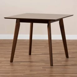 Spruce up your dining space with the chic design of the Pernille dining table. Constructed from durable wood, the Pernille comfortably seats up to four. A warm walnut brown finish and splayed legs give the table a cool, modern look. Designed for versatility, the Pernille is well suited for both casual and formal dining. The Pernille dining table is made in Malaysia and requires assembly.