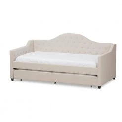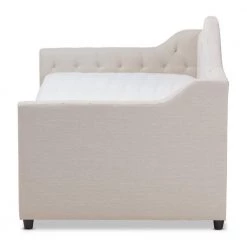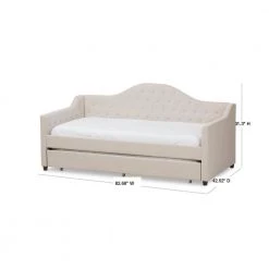 A softly sloping silhouette on the back panel and side panels give the Perry fabric upholstered daybed a subtle look while its delicate design, deep tufting look showcase a timeless and designer appeal. Constructed of solid wood frame with MDF, the Perry is guaranteed to stand the test of time. Versatile with contemporary look and sophisticated details, the Perry daybed can easily go from urban industrial apartment, to coastal chic beach house. Tufted upholstery softens the silhouette and ensures plenty of padding for lounging, reading and resting. The Perry imbues a luxury high end look while providing you with day to day function as a daybed o extra guest’s bed. Made in Malaysia, the Perry requires assembly.