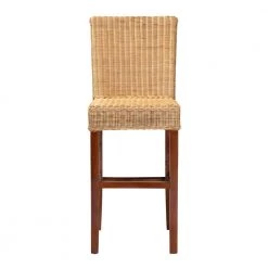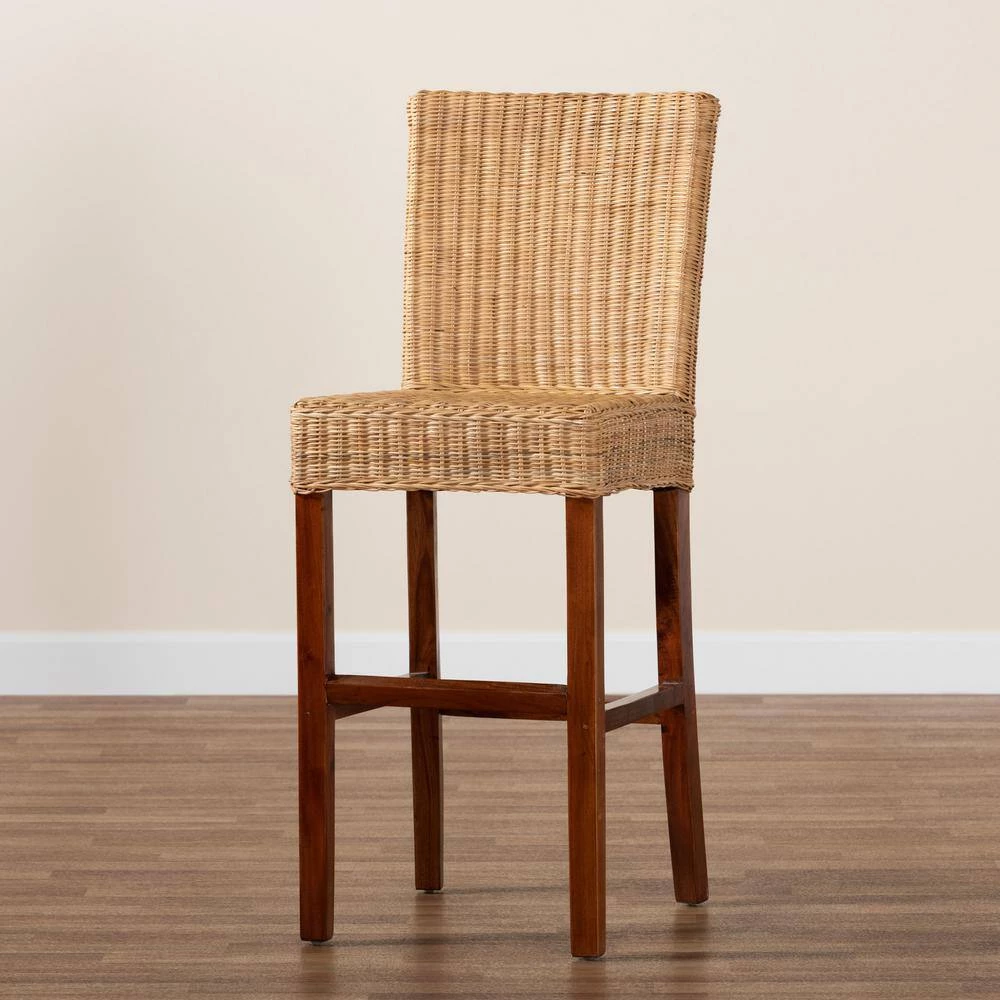 Carve out a personal rustic paradise with the soothing tones of the Racquel bar stool. Made in Indonesia, this tranquil piece consists of a robust mahogany wood frame wrapped in woven rattan. Its angled backrest encourages casual relaxation while lending a distinguished silhouette. The Racquel will arrive fully assembled and features ergonomic footrests for enhanced comfort in any setting. Granting a serene ambiance to the modern home, the Racquel bar stool elevates any occasion.Due to the nature of the natural materials used in this product, it may have variations in areas such as, but not limited to, color, pattern, grain and texture. The hair-like strands of rattan/rattan-fiber are common due to nature of the material.