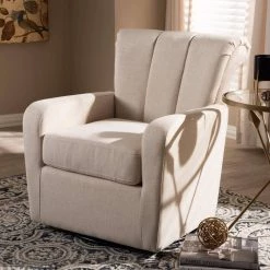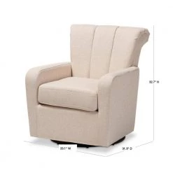 Create a cozy nook in your space with the Rayner swivel chair. Constructed from plywood, the Rayner is upholstered in a classic neutral fabric, boasting a soft texture, as well as resistance to wear and tear. The chair is fitted with a swivel base, allowing you to rotate 360°. Channel tufting on the back adds an elegant, refined look. This versatile chair is well suited for a living room, bedroom, or home office. The Rayner swivel chair is made in China and will arrive fully assembled.