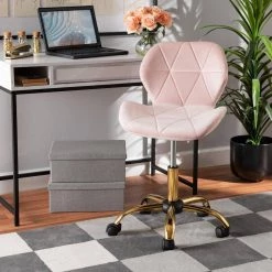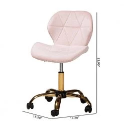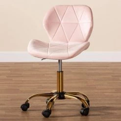 Embrace working from home with the wonderfully cozy and versatile Savara office chair. Made in China, this gorgeous piece is comprised of a solid metal base topped with an alluring velvet fabric upholstered seat. Geometric tufting on the chair exhibits a crisp, modern display while highlighting the rich hues of the velvet. The Savara requires assembly and features caster wheels for excellent mobility. 360° swivel capability and adjustable height offer superb accommodation for individual needs, making the Savara chair an impressive addition to any home office.