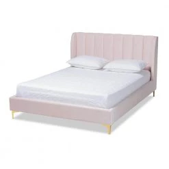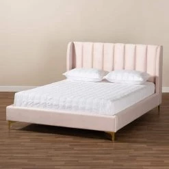 Create a stylish retreat in your bedroom with the Saverio bed. Built with a sturdy wood frame, the Saverio is upholstered in a soft, sumptuous velvet fabric that displays a subtle sheen. The beauty of the velvet fabric is highlighted by classic channel tufting on the headboard. Designed to showcase luxury, the Saverio features a regal wingback silhouette on the headboard, as well as stunning gold-tone metal legs. The Saverio bed is made in Malaysia and requires assembly.