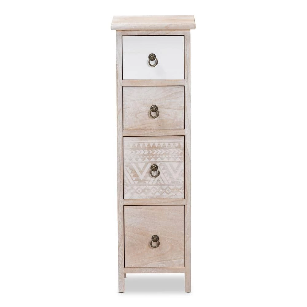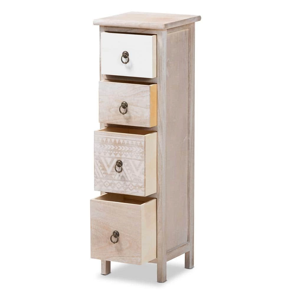 The remarkable Seanna storage unit radiates tranquil vibes in your space with its stunning, dynamic design. Made in China, this handy piece is crafted from sturdy wood and adorned with intricately molded metal ring-pulls. Four multi-sized drawers accommodate your storage needs by organizing your household essentials both large and small. The Seanna will arrive fully assembly and features a striking combination of natural wood grain and geometric shading for an eye-catching accent piece. with a slim frame, the Seanna storage unit is a perfect solution to enhance vacant areas of any interior.