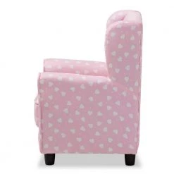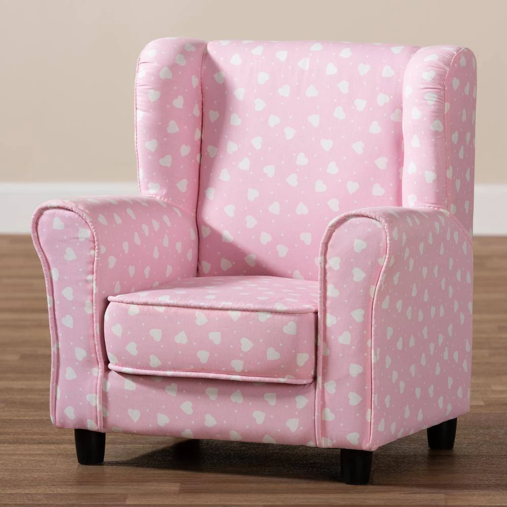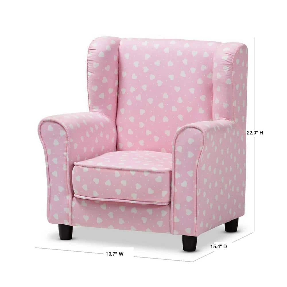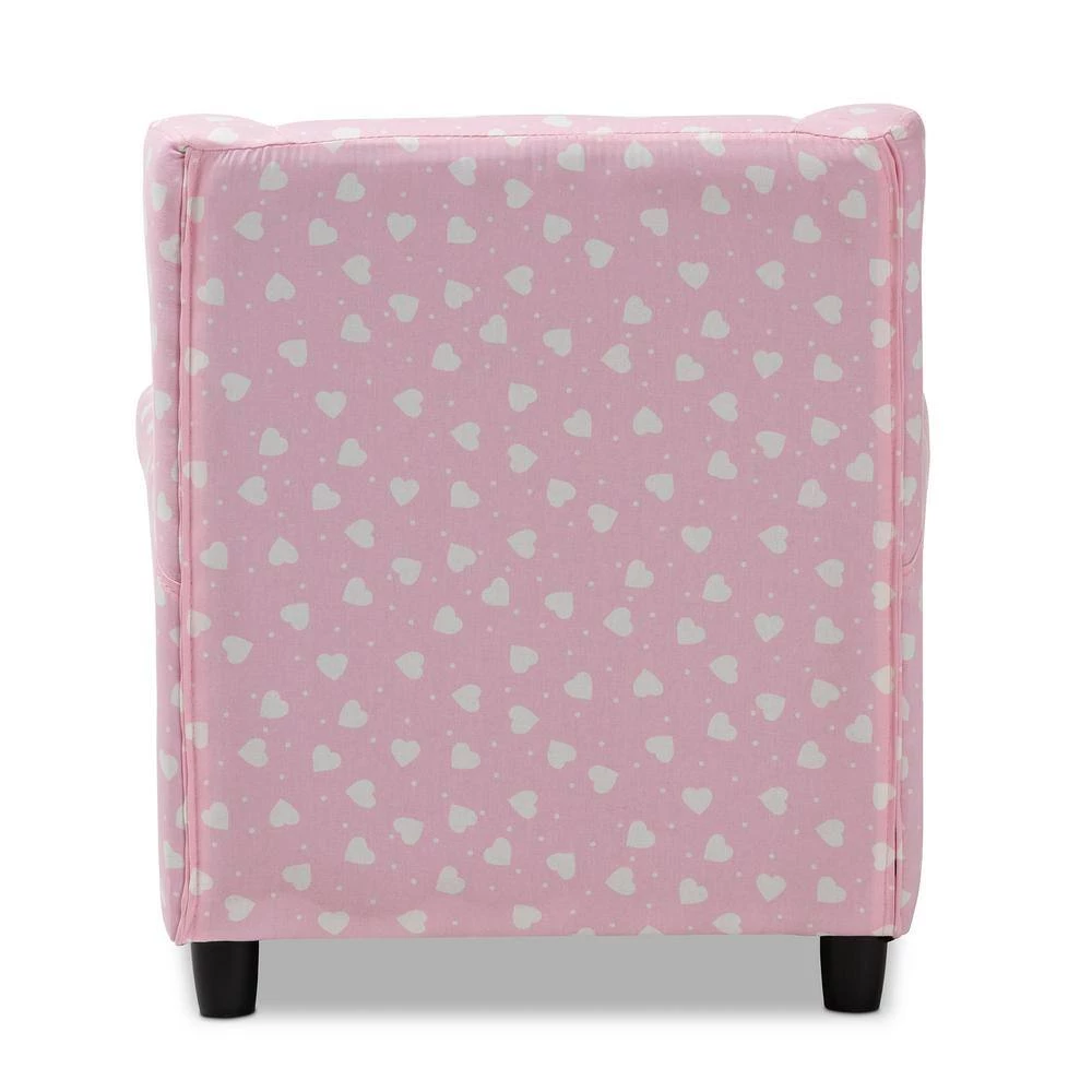 Create a charming lounge space for your little one with the Selina armchair. Constructed from rubberwood for durability, the Selina is upholstered in a pink and white heart patterned fabric for vibrant style. High-density foam padding and a wide back ensure a high level of comfort during those Disney movie marathons. This armchair is sure to become your little ones favorite spot as they read books, watch TV, and relax with friends. The Selina armchair is made in China and requires leg assembly.