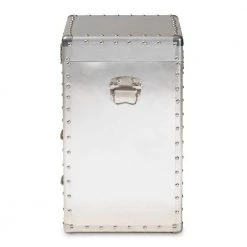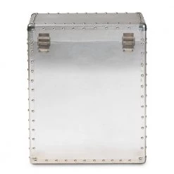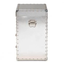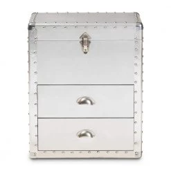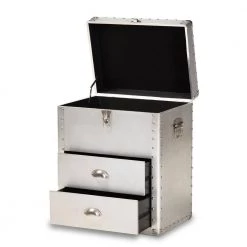 Bring chic industrial style into your space with the Serge cabinet. Constructed from wood and metal, the Serge features a unique lift-top compartment with ample storage space. Two drawers provide additional space to keep items organized. Polished silver metal drawer handles add a sleek touch. Inspired by vintage storage trunks, the Serge is embellished with rivets and corner protectors. This cabinet is well suited for a living room or entryway. The Serge cabinet is made in China and will arrive fully assembled.
