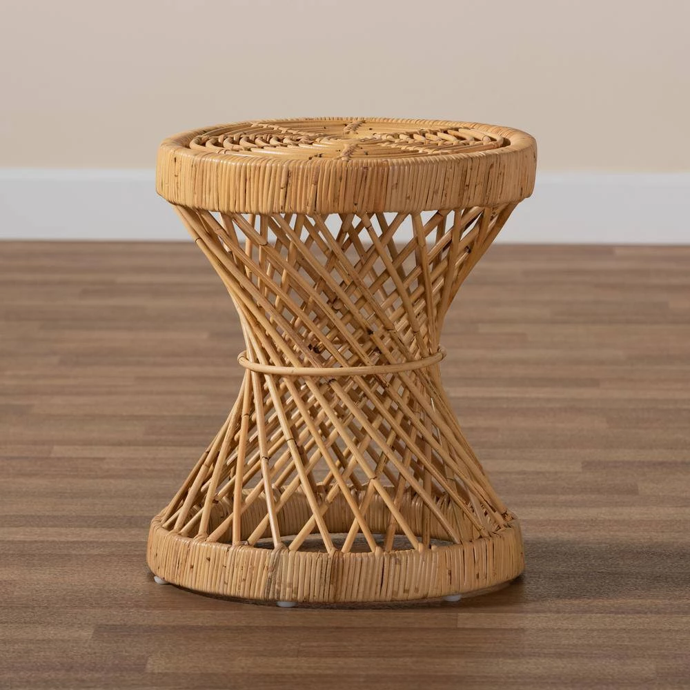 The charismatic Seville end table is the ideal piece to bring tropical charm to the modern home. Handmade in Indonesia, this end table is comprised of natural rattan. The curved frame showcases intricate weaving for a stunning appearance from any angle. Fully assembled, the Seville features a circular tabletop that makes a convenient pedestal for drinks or decor. With its compact size and distinct shape, the Seville end table is a remarkable addition to any space.This is a product of nature and may have variations in areas such as, but not limited to, color, pattern, grain and texture. The hair-like strands of rattan/rattan-fiber are common due to nature of the material.
