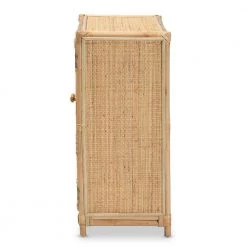 Accommodate your needs while expressing a carefree, tropical mood in your space with the Shena storage cabinet. Made in Indonesia, this handy piece is comprised of a remarkable blend of wood and natural rattan. Two woven rattan shelves behind the doors offer space to organize and arrange your belongings in style. The Shena will arrive fully assembled and features geometric doors that convey an open feel while accentuating the exotic craftsmanship of the piece. Offering essential storage space in stunning design, the Shena storage cabinet is sure to transform the feel of any interior layout.Due to the nature of the natural materials used in this product, it may have variations in areas such as, but not limited to, color, pattern, grain and texture. The hair-like strands of rattan/rattan-fiber are common due to nature of the material.