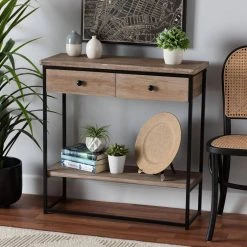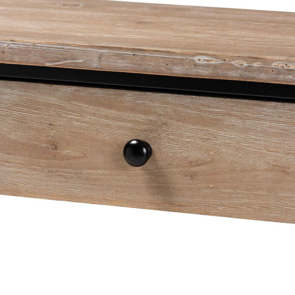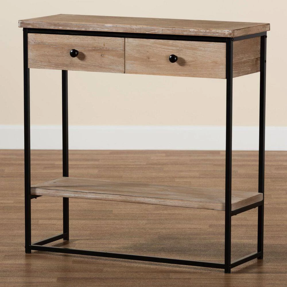 Convey a rich visual texture in your space with the inspired Silas console table. Made in China, this handy piece consists of an openwork metal frame fitted with wood. Two drawers offer enclosed storage for household essentials while the wide, open shelf and tabletop serve as decorative displays. The Silas requires assembly and features round drawer knobs that beautifully stand out against the wood grain. An illustrative rendition of industrial design, the Silas console table is sure to leave an impression.