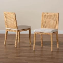 Elevate the atmosphere of any space with the casual style of the Sofia dining chair. Handmade in Indonesia, the Sofia is constructed from sturdy wood. The chair is enveloped in natural rattan for a cozy embrace that also lends a relaxed, tropical look. Fully assembled, the plush, removable cushion is padded with soft foam and upholstered in smooth fabric. The modern outline and superb comfort of the Sofia dining chair enhances any dining experience.This is a product of nature and may have variations in areas such as, but not limited to, color, pattern, grain and texture. The hair-like strands of rattan/rattan-fiber are common due to nature of the material.