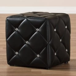 Complete your interior design with the Baxton Studio Stacey Ottoman. This ottoman features a modern style, which adds a contemporary element to any home. With a faux leather construction, it has the appearance of real leather but is much easier to take care of. It features button tufting, which adds beautiful detailing and a luxurious look.