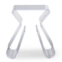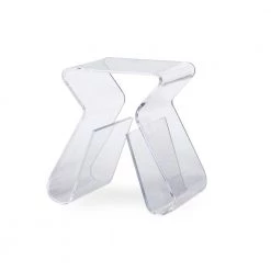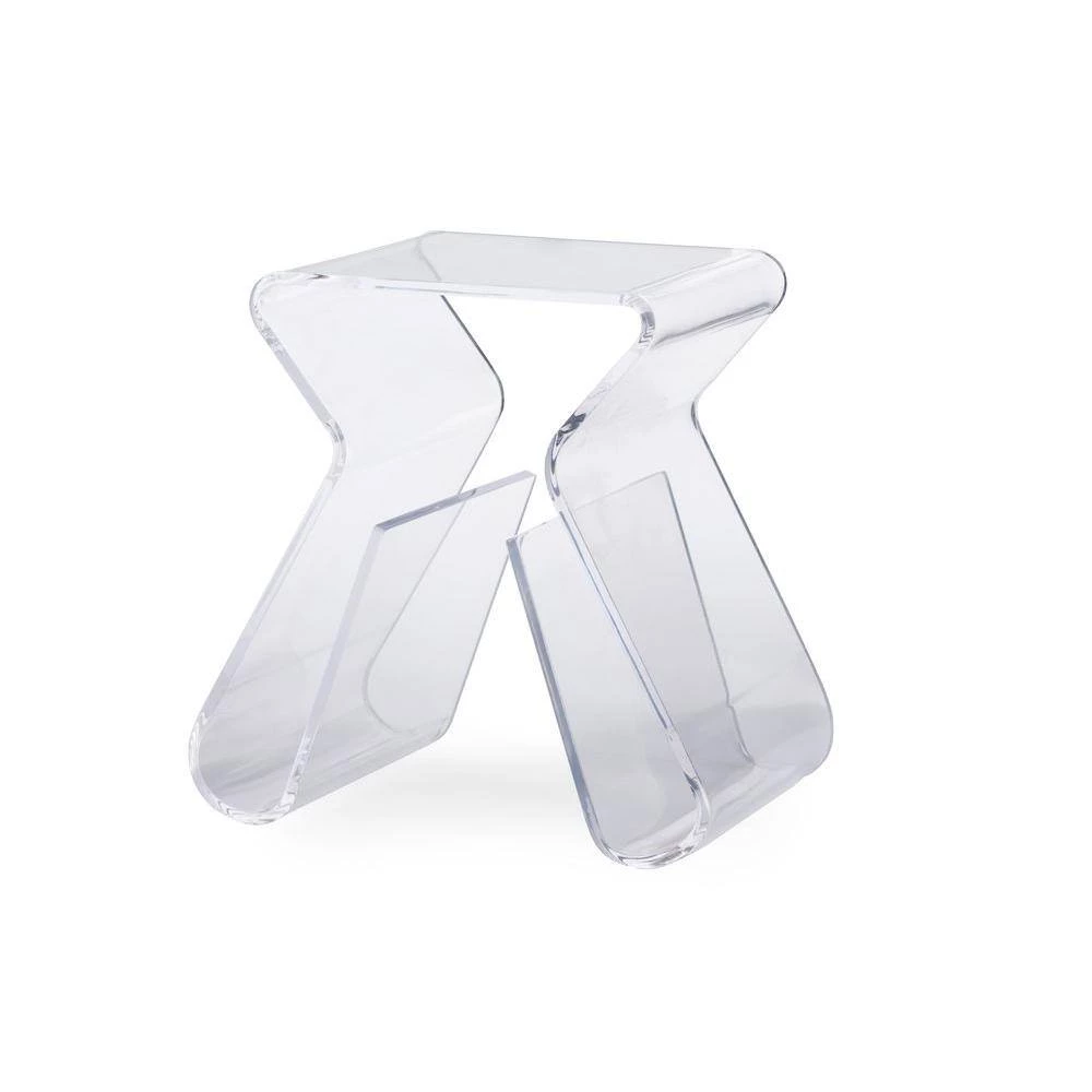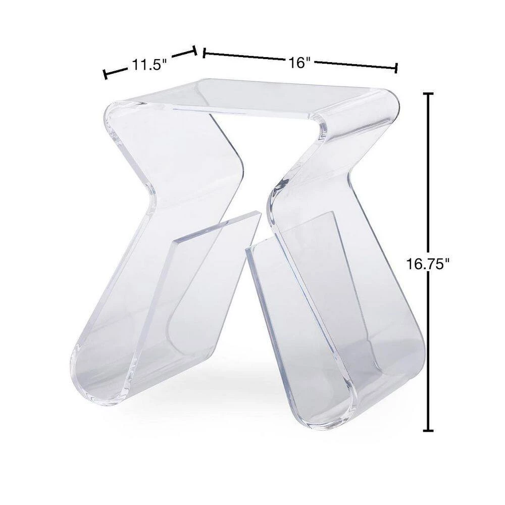 This is a petite table that does not fall short when it comes to style and function. Instead of stopping at the floor, the legs cleverly wrap underneath this modern side table, creating a convenient space on each side for storage of reading materials or any other items you can imagine. Construction is a very solid, hard clear acrylic.