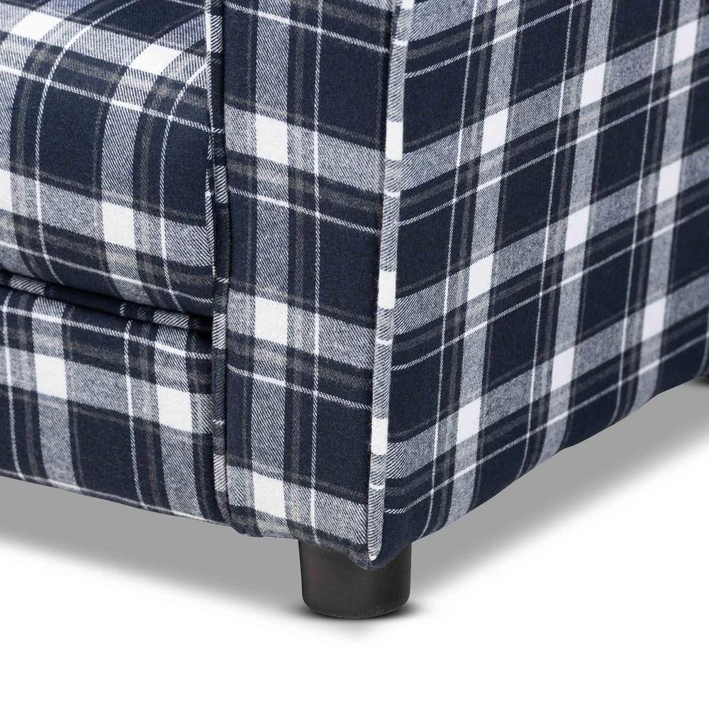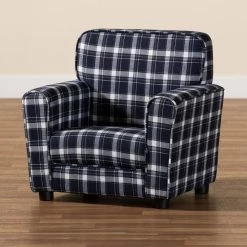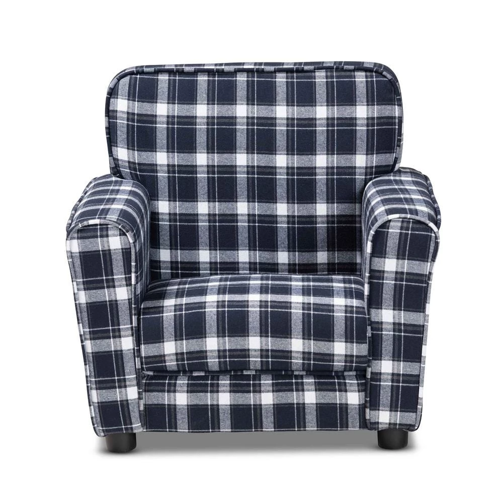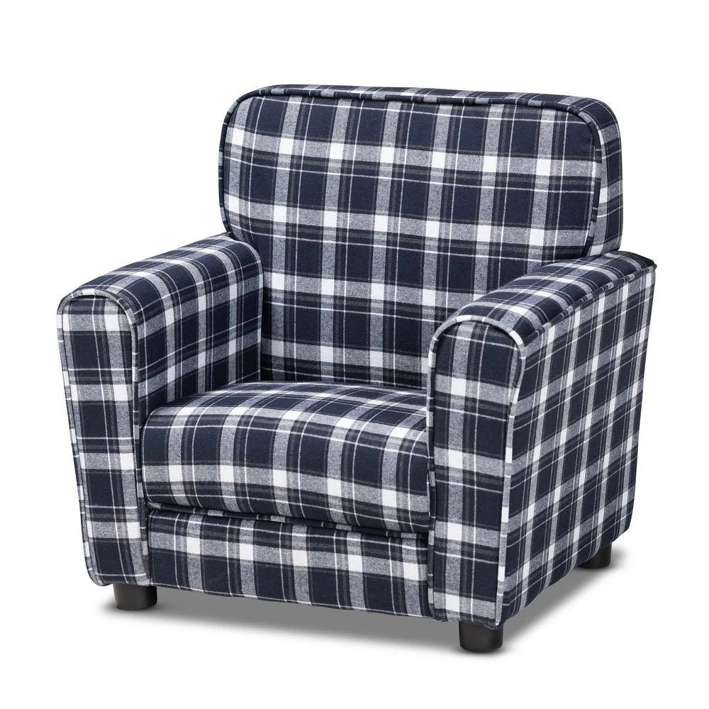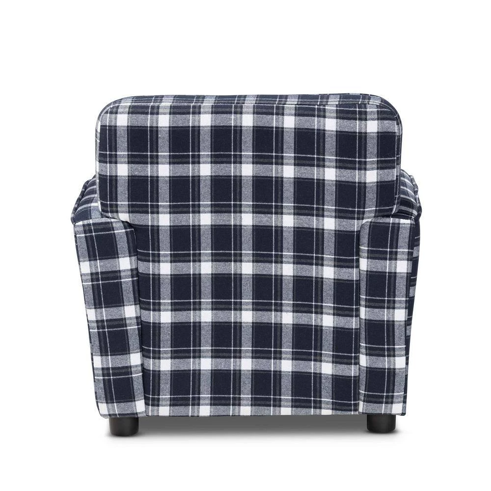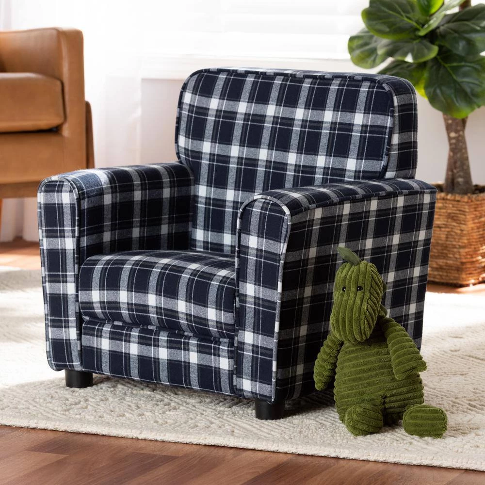 Give your little 1-a cozy place to relax and lounge with the Talma armchair. Made in China, this armchair encourages easygoing relaxation with plush cushions upholstered in smooth fabric. The plaid pattern gives the Talma a fun design that stands out as an expressive yet classic display. Requiring assembly, the sturdy wood frame and black rounded feet ensure excellent stability and support. With its superb comfort and classic style, the Talma armchair easily finds its place in any play area.