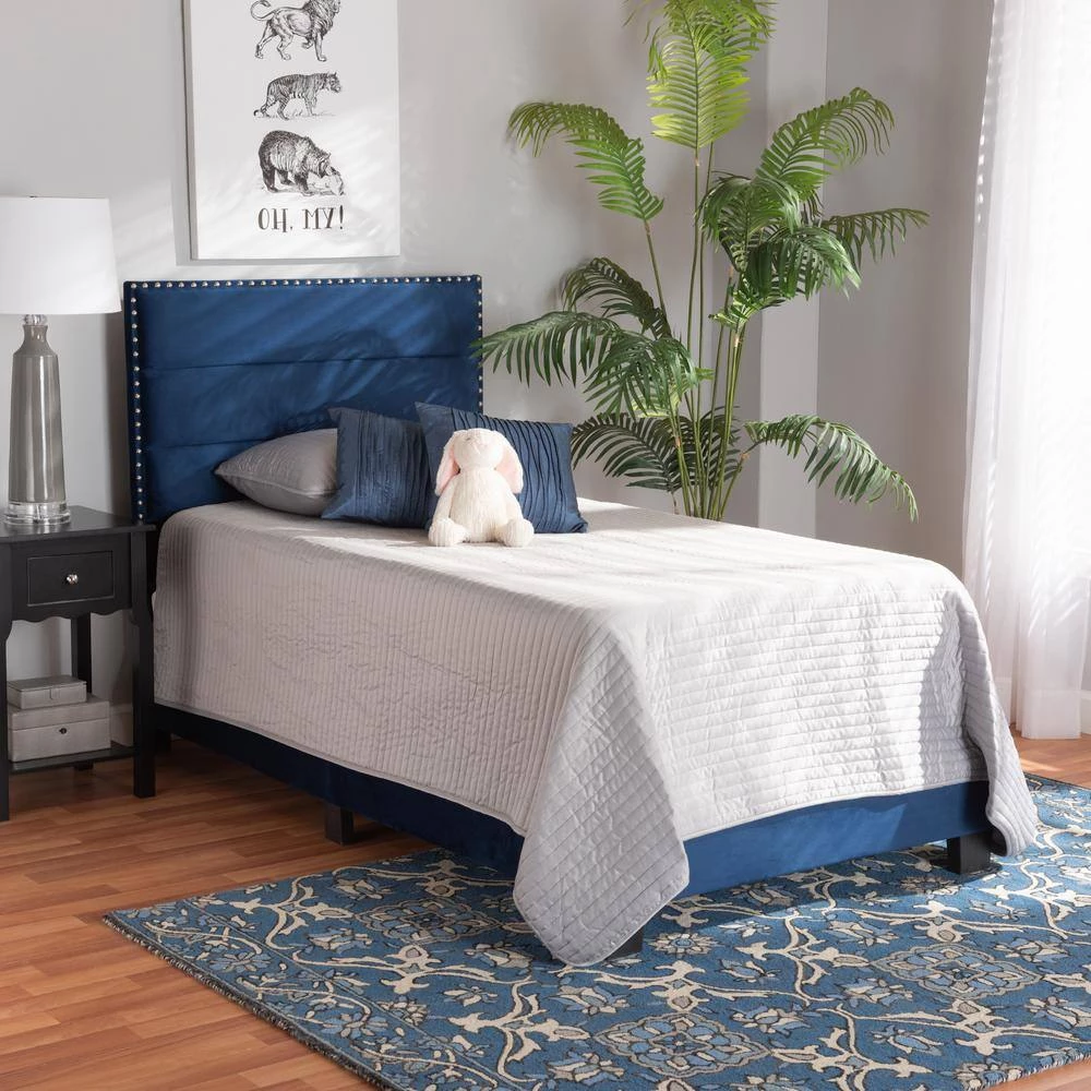 Redefine the feel of any bedroom with the stunning design of the Tamira bed. Made in Malaysia, this wood bed is padded with thick layers of soft foam and upholstered in sumptuous velvet fabric. The plush, channel tufted headboard provides excellent back support, while silver finished metal nailheads add a touch of glamour. Requiring assembly, the Tamira needs a box spring to function properly. The transformative style of the Tamira bed makes it a fantastic addition to the modern home.
