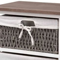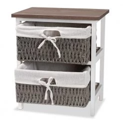 Add a touch of urban sophistication to your space with the stunning Terena storage unit. Made in China, this unit is comprised of a lightweight wood frame fitted with woven baskets. Two baskets expand the storage potential of any space while the rectangular tabletop acts as an eye-catching pedestal for decorative items. Comes fully assembled, the Terena utilizes fabric liners for a contemporary touch. A stylish and convenient upgrade to any space, the Terena storage unit is sure to leave an impression.