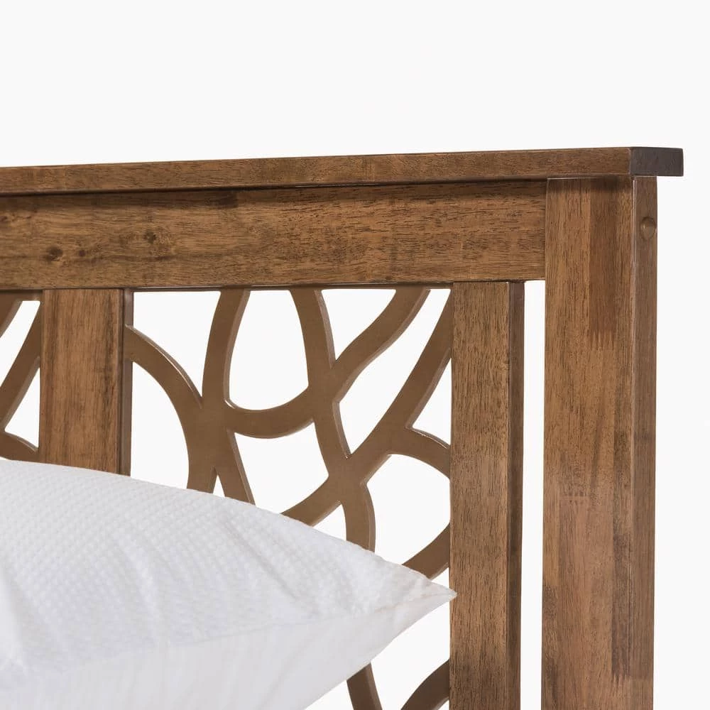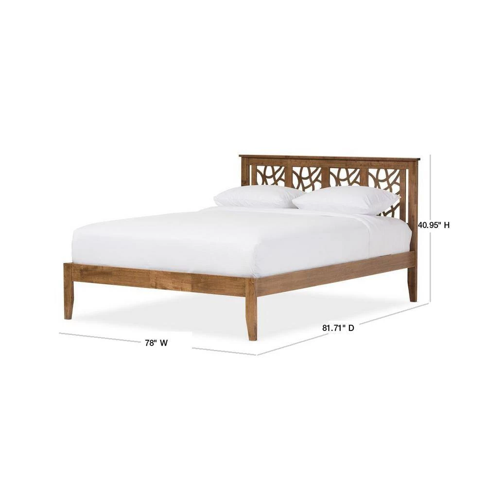 The Trina king size platform bed will form the center-piece of your bedroom, with its beautiful and distinctive headboard panel framed with a polyresin tree branch design. This airy headboard and the low footboard infuse modern design elements into your bedroom. Not only does the Trina king size bed look great, but its sprung wooden slats will help give you a good night’s sleep. With its sturdy rubberwood and poplar frame, the Trina is built to stand the test of time. Finished in a walnut brown, the Trina shows off the natural beauty of the rubberwood. To enable the bed to get through your door, it comes flat packed and requires assembly. This bed is made in Malaysia.