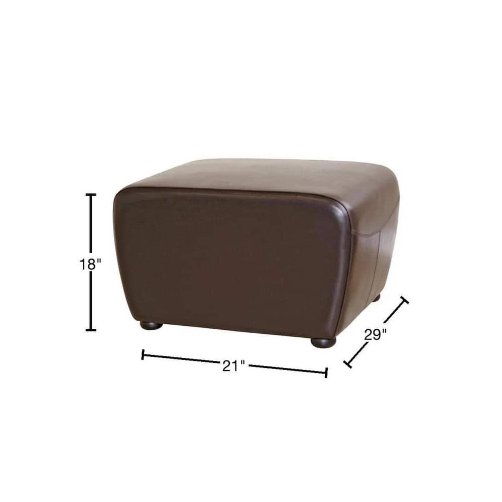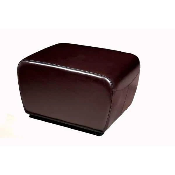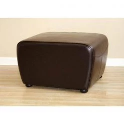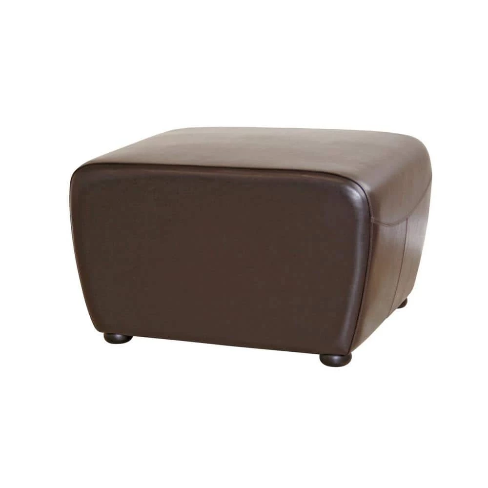 Take deep espresso brown bicast leather and pair it with a smooth-edged design with tapered sides and the result is this practical mid-sized ottoman. It includes round black wooden legs, which feature non-marking feet for protection of harder flooring. Padding underneath the leather makes this a comfortable leather option for a footstool as well as for additional seating.