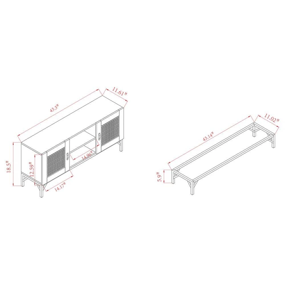 Grace your living room with the charming, Bohemian aesthetics of the Veanna TV stand. Made in China, this stunning piece combines synthetic rattan accents with a sturdy wood and metal frame for a tranquil, carefree display that exudes warmth. 2-open shelves create a convenient display for media devices, while 2-additional shelves behind the doors offer secure storage space. Requiring assembly, the Veanna features a cord management hole on its back panel for quick and easy setup. An outstanding focal point with ample storage potential, the Veanna TV stand is a stylish solution to media organization.