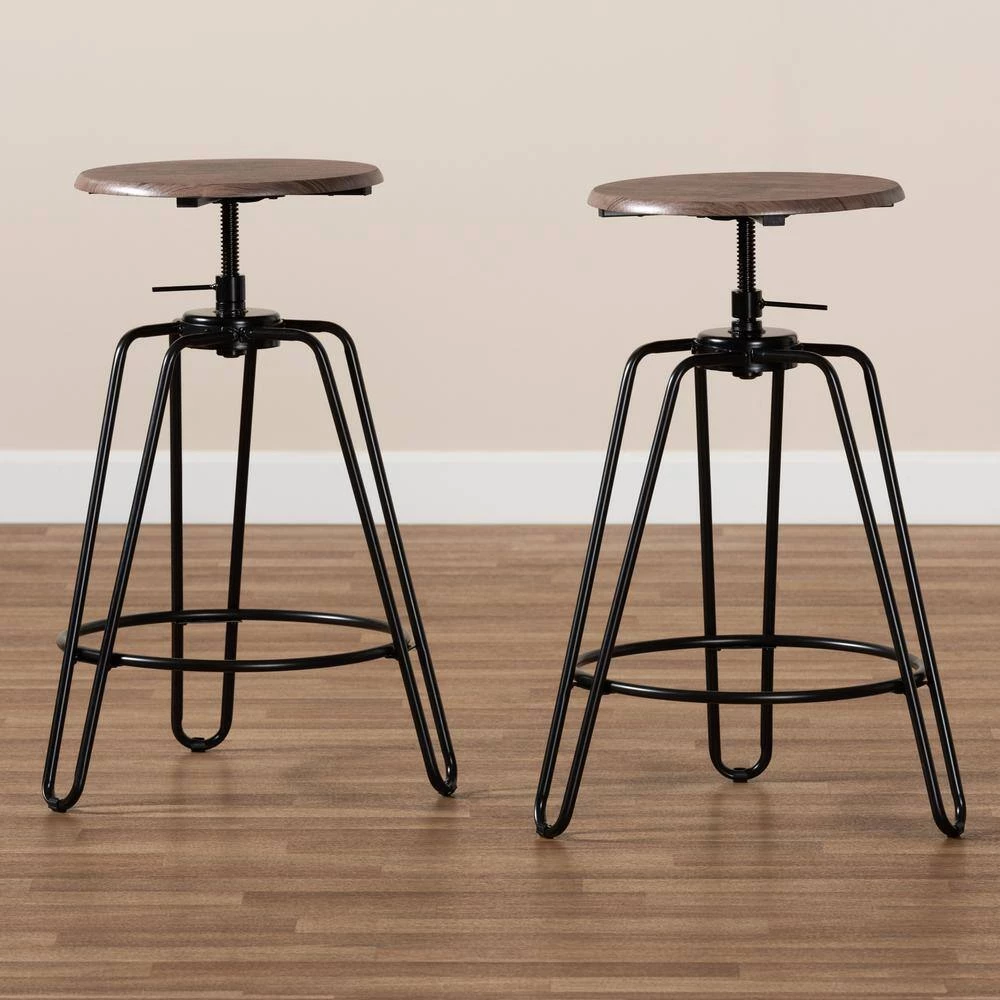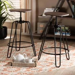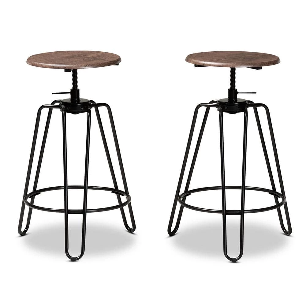 Cultivate a cool, modern look in your dining area with the Veera bar stool. Made in China, this bar stool features a walnut brown finish that complements the black metal frame. A swivel seat and solid footrest lend ample comfort while dining. Height adjustable to fit your needs, this bar stool is easy to coordinate with a wide range of decorative styles. Requiring assembly, the Veera bar stool is well suited for both kitchens and bar areas.