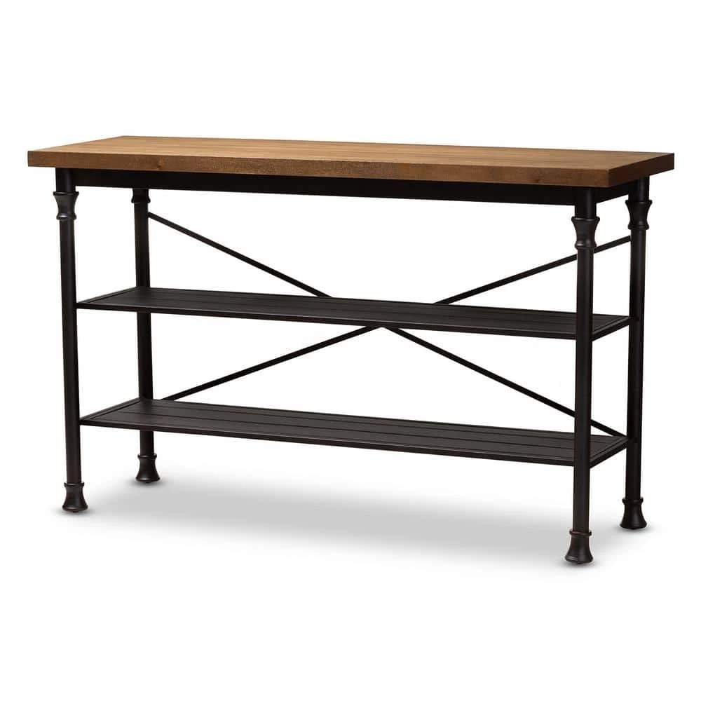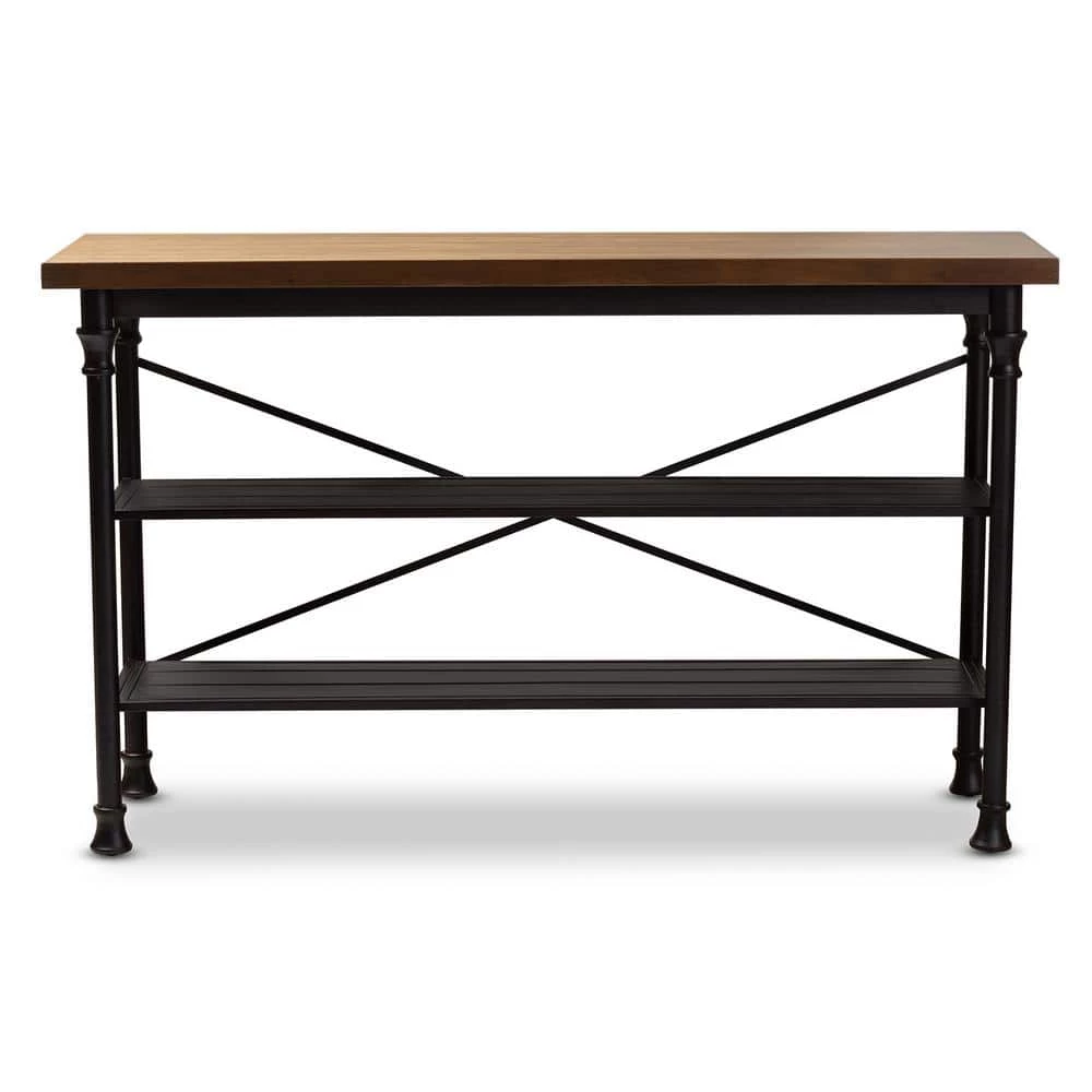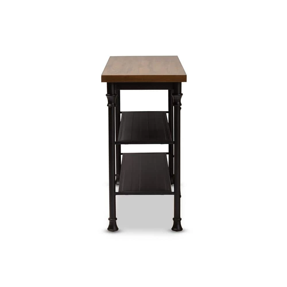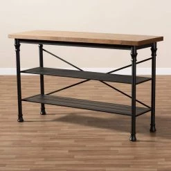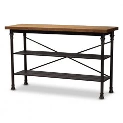 Make efficient use of your kitchen space with the Velera kitchen island table. Constructed from sturdy dark bronze-finished metal, the Velera features MDF wood in a stunning distressed ash veneer finish. A large tabletop and two spacious shelves provide space to store spices, oils, and more. Inspired by industrial design, the table is fitted with a bold crisscross stretcher for both structural support and visual interest. With its charming vintage appearance and ample storage space, the Velera is sure to keep your kitchen looking chic and organized. The Velera is made in China and requires assembly.