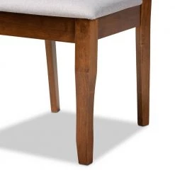 Modern comfort and contemporary design create the Verner dining chair. Made in Malaysia, the Verner is constructed from sturdy wood in a traditional square frame. The dining chair balances form and function with a crisscross cut-out design on its back and a soft, foam-padded seat for comfort. Requiring assembly, the Verner is upholstered in a grey fabric that complements the walnut brown finish on the wood. Cabriole legs add a touch of classic style, making the Verner dining chair a fantastic choice for any dining room.