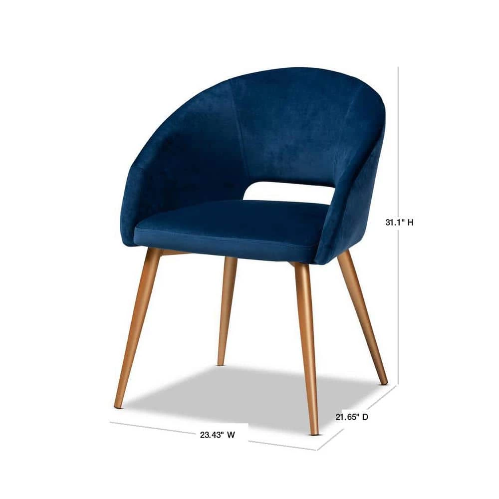 A retro design gets a luxurious update in the Vianne dining chair. Upholstered in a soft, sumptuous navy blue velvet fabric, the Vianne features a curved back and wide seat for the utmost dining comfort. The cut-out back design and splayed gold-tone legs give this chair a glamorous mid-century look. Use this versatile piece as a dining chair or as an accent chair in the living room. The Vianne dining chair is made in China and requires assembly.