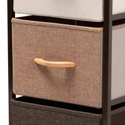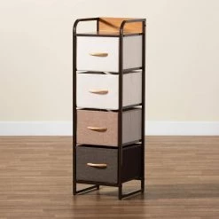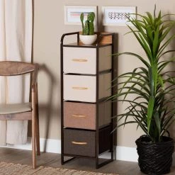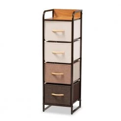 Manage the needs of your home with the outstanding versatility of the Volkan storage cabinet. Made in China, this cabinet is comprised of a solid metal frame fitted with wood shelves and fabric upholstered drawers. Four drawers offer exceptional storage space to organize your belongings while the wide shelf creates a lovely display for decorations. Requiring assembly, the Volkan features curved drawer handles that stand out against the wood. A fantastic solution to your storage needs, the Volkan cabinet transforms the atmosphere of any space.