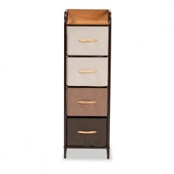 Manage the needs of your home with the outstanding versatility of the Volkan storage cabinet. Made in China, this cabinet is comprised of a solid metal frame fitted with wood shelves and fabric upholstered drawers. Four drawers offer exceptional storage space to organize your belongings while the wide shelf creates a lovely display for decorations. Requiring assembly, the Volkan features curved drawer handles that stand out against the wood. A fantastic solution to your storage needs, the Volkan cabinet transforms the atmosphere of any space.