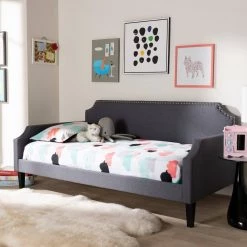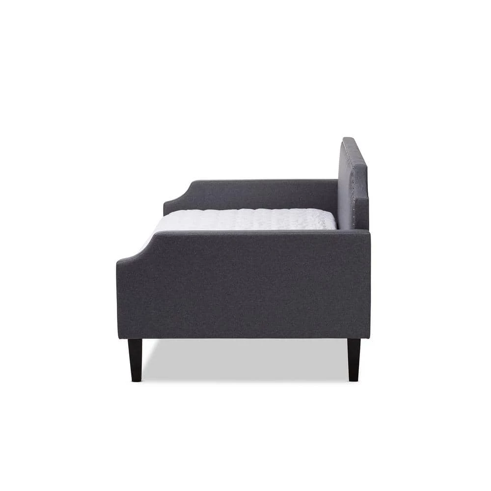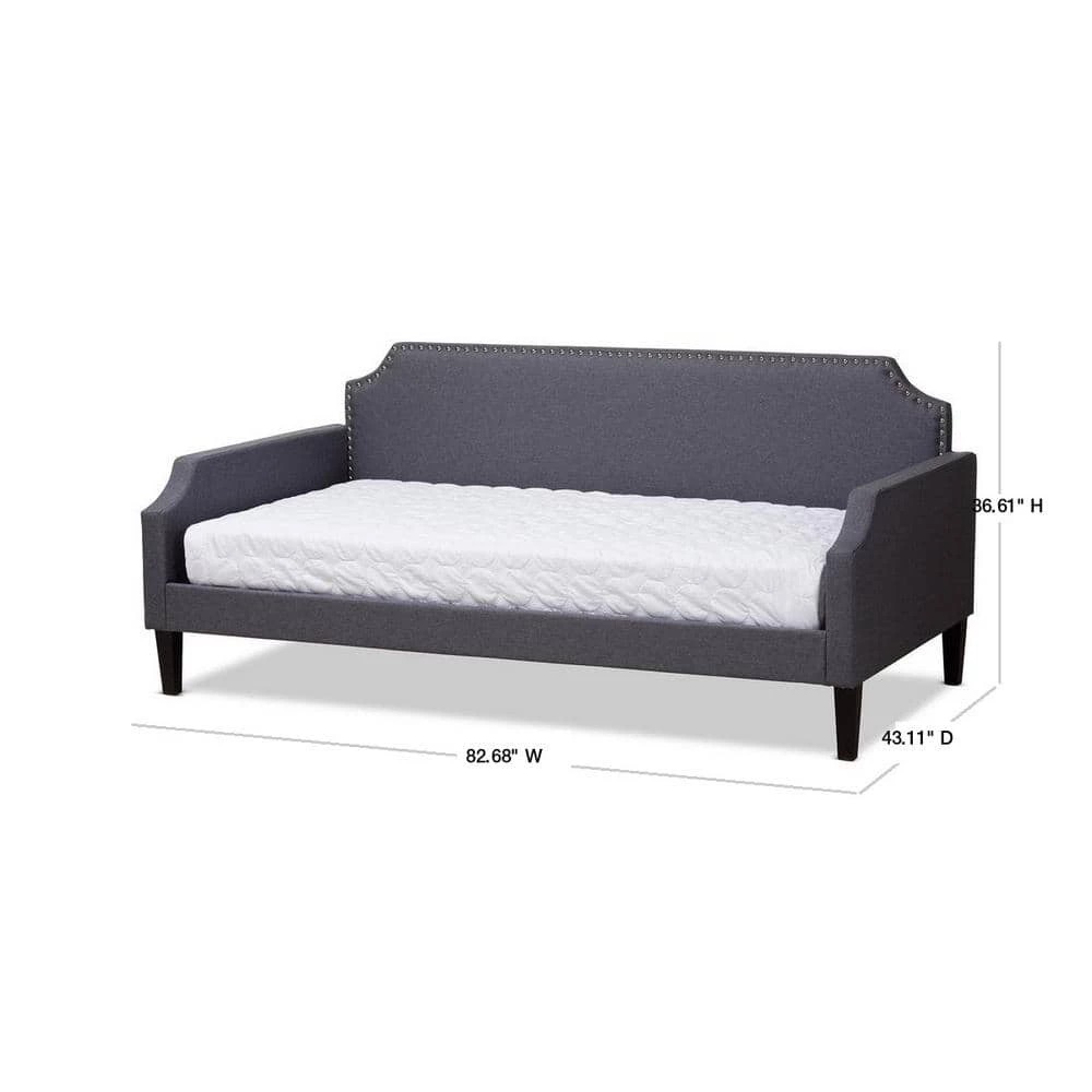 Transform any space in the home from living room to bedroom in just a few simple steps with the Walden daybed. Solidly built from rubberwood and MDF wood, the Walden daybed can be easily converted from a seating area to a sleeping sanctuary. The Walden is foam-padded and upholstered in polyester fabric for comfort and contemporary appeal. Featuring a cut out back panel and side panels, the daybed is accented with chrome nail heads for a glamourous, modern look. The Walden daybed is made in Malaysia and requires assembly.