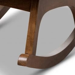 The Waldmann rocking chair embodies elegance, sophistication, and comfort. This mid-century modern-inspired rocking chair is upholstered in grey fabric, resting stylishly on solid, walnut-finished rubberwood legs. The Waldmann features a tasteful, button-tufted wingback with foam padding. This fashionable chair will look right at home in your livingroom, nursery, or any shared space, as the subtle design makes it easy to coordinate with your decor. Complete the clean, polished look with other pieces available in the Waldmann range. Made in Malaysia, the Waldmann requires assembly.