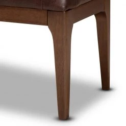 Broaden the potential of your dining space with the handy Walsh dining bench. Made in Malaysia, this bench is crafted from sturdy wood. Its plush cushion is padded with soft foam and upholstered in smooth faux leather to offer cozy comfort with every meal. Requiring assembly, the Walsh features tapered legs for excellent stability that lends a smooth, mid-century modern silhouette. Perfect for smaller dining rooms and nooks, the Walsh dining bench expands the capabilities of any dining room.