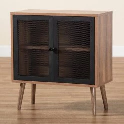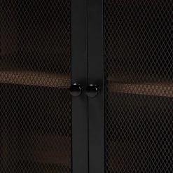 Reorganize the layout of your space with the bold design of the Yuna storage cabinet. Made in China, this handy piece is comprised of a sturdy wood frame embellished with solid metal. Two large shelves behind the doors offer ample storage space to tidy up and declutter busy areas of your home. Requiring assembly, the Yuna features mesh metal doors for a cool, industrial touch. Angled legs complete the classic silhouette, making the Yuna storage cabinet an expressive addition to any space.