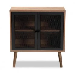 Reorganize the layout of your space with the bold design of the Yuna storage cabinet. Made in China, this handy piece is comprised of a sturdy wood frame embellished with solid metal. Two large shelves behind the doors offer ample storage space to tidy up and declutter busy areas of your home. Requiring assembly, the Yuna features mesh metal doors for a cool, industrial touch. Angled legs complete the classic silhouette, making the Yuna storage cabinet an expressive addition to any space.