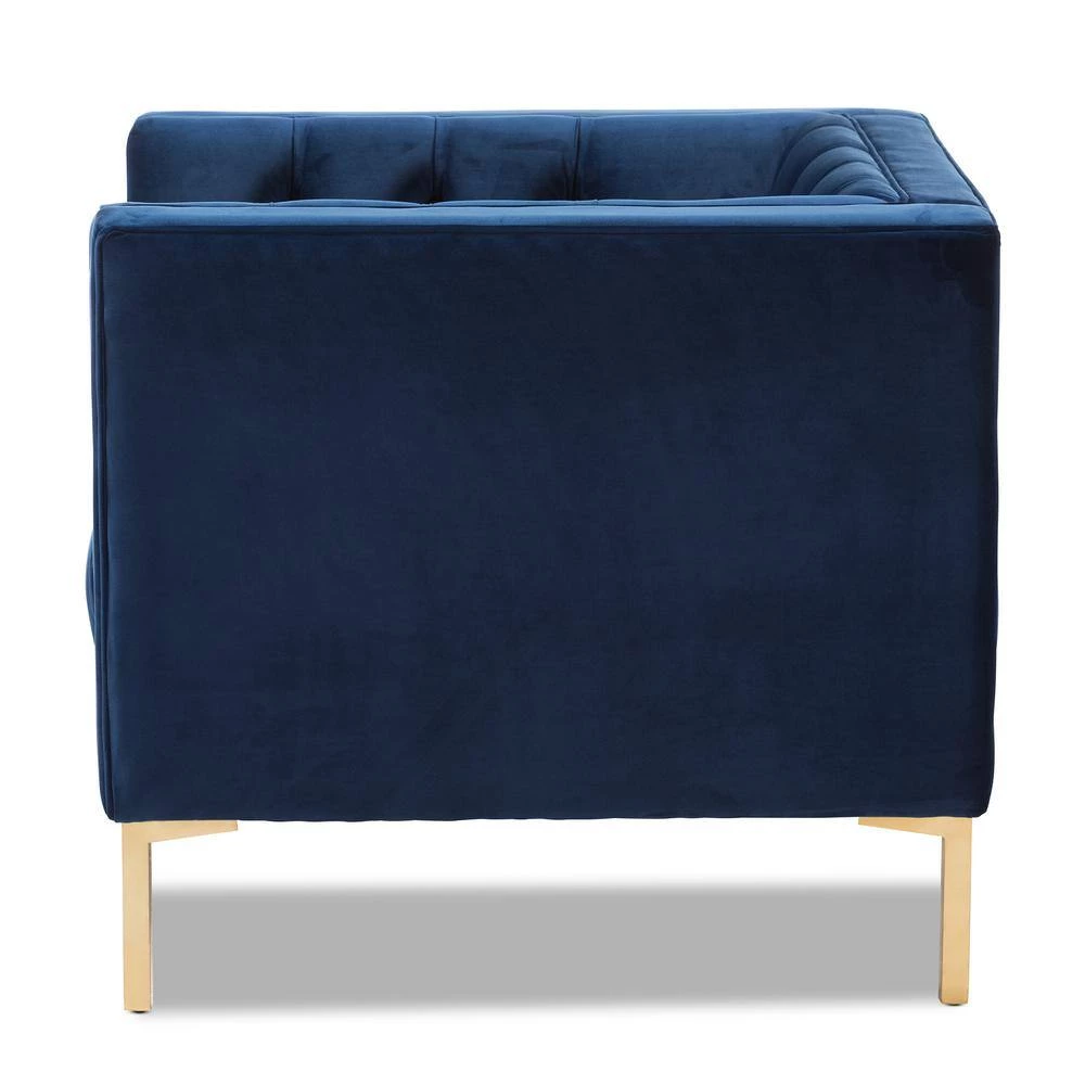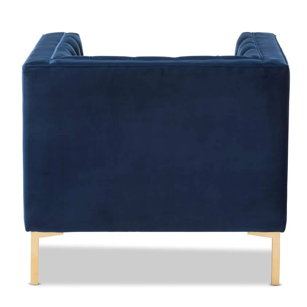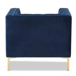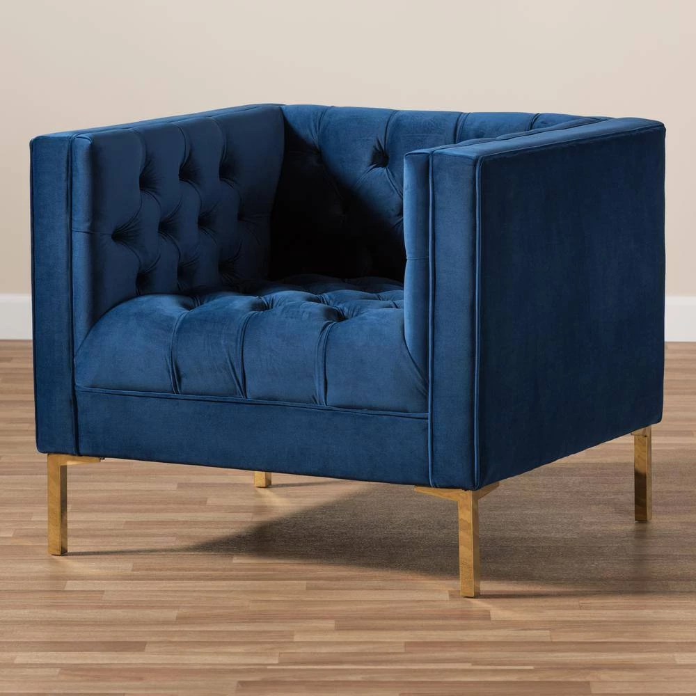 Instantly add an elegant, luxurious look to your home with the Zanetta lounge chair. The luxe and glamour-inspired design comes through in the clean, square silhouette of the chair. The Zanetta is foam-padded for sumptuous comfort and upholstered in a stylish navy velvet. The upholstery is delightfully complemented by the glossy, gold-finished legs of the chair. The lounge chair features a gorgeous button-tufting design and edge piping for a sophisticated look. Welcome guests to your livingroom or reception area with the chic Zanetta, or even add it to your entryway for extra seating and a touch of glam. Made in China, the chair requires assembly.