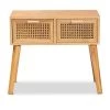 - Brown faux-leather upholstery