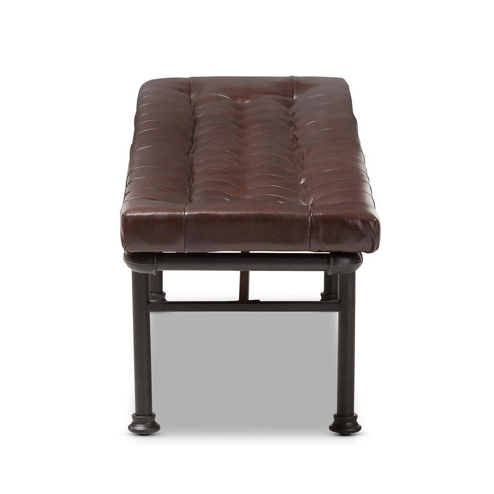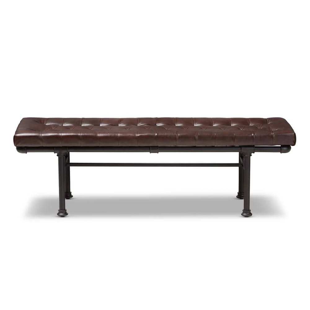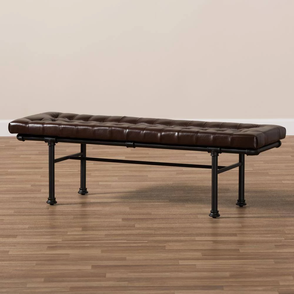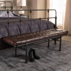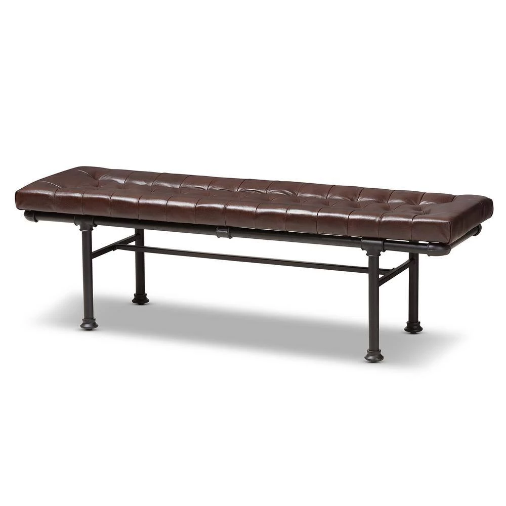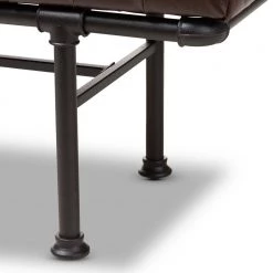 Add a touch of industrial charm to your home with the Zelie bench. The rustic and industrial-inspired look is evident in the reclaimed pipe-look of the frame, finished in dark bronze. The bench is built to last with a sturdy metal frame with the look of connected pipes. The cushion of the Zelie is foam-padded for comfort and upholstered in warm brown faux-leather. This factory-inspired bench will add style and flair to your living room, bedroom, or even in your entryway for extra seating. Made in China, the Zelie requires assembly.
