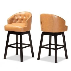 Theresa Greyish Beige and Walnut Brown Fabric Accent Chair (Set of 2) by Baxton Studio